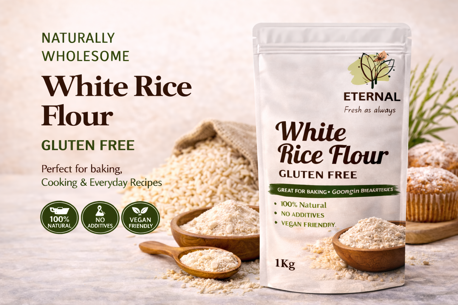 Ideal for Every Kitchen, 100% gluten-free, vegan, and allergen-friendly. Suitable for Coeliac, vegetarian, and plant-based diets.Clean, simple ingredient for versatile, everyday recipes, Elevate your baking and cooking with our premium gluten-free rice flour – the gentle, nutritious choice for smart, healthy living.